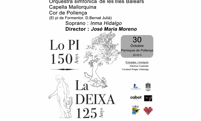 L´Orquestra Simfònica Illes Balears i la Fundació Rotger Villalonga ofereixen un Gran Concert a la Parròquia per commemorar el 150è aniversari de la publicació del poema "El Pi de Formentor" i el 125è aniversari de "La deixa del geni grec", dos dels poemes més populars del poeta pollencí Miquel Costa i Llobera.