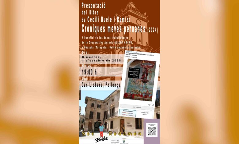 Aquest dimecres, 1 d’octubre a les 19 h, a Can Llobera (Pollença), Cecili Buele presenta el llibre Cròniques meves peruanes (2024). Una obra amb rerefons solidari